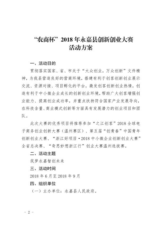 关于印发“农商杯”永嘉县创新创业大赛活动方案的通知