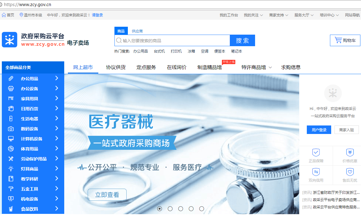 用户注册:政采云目前暂未开放注册,除学校采购管理人员外,仅提供商品搜索功能;