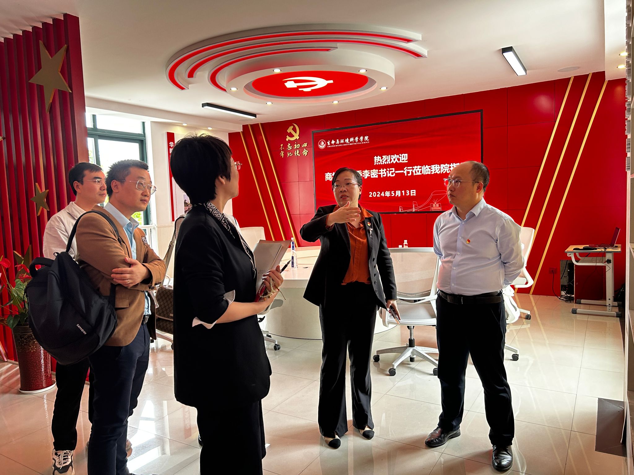 党委书记李密、党委副书记唐华、跟岗干部王露、教工第一党支部组织委员兼金融系主任林德根、金融系教师郑阳阳等前往温州大学生命与环境科学学院就全国党建工作样板支部的创建进行学习交流。